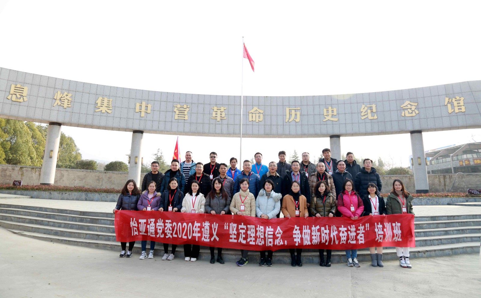 为积极落实市非公党委要求,响应周国辉董事长号召全体职工学习“以奋斗者为本”精神,大力推动思想解放、创新再突破、工作再抓实,不断开创新局面,倡导党员职工学习中国共产党优良传统及艰苦奋斗精神,在岗位中树正气、立正风,坚守理想信念,引导广大职工向“新时代奋进者”前进。12月18-22日,怡亚通集团党委书记许前明带领党委班子及各支委、优秀党员等赴遵义开展“坚定理想信念 争做新时代奋进者”培训班,公司的党员领导李程、李国丞、符丽梅、叶兵生、鄢奎平等均参加培训。